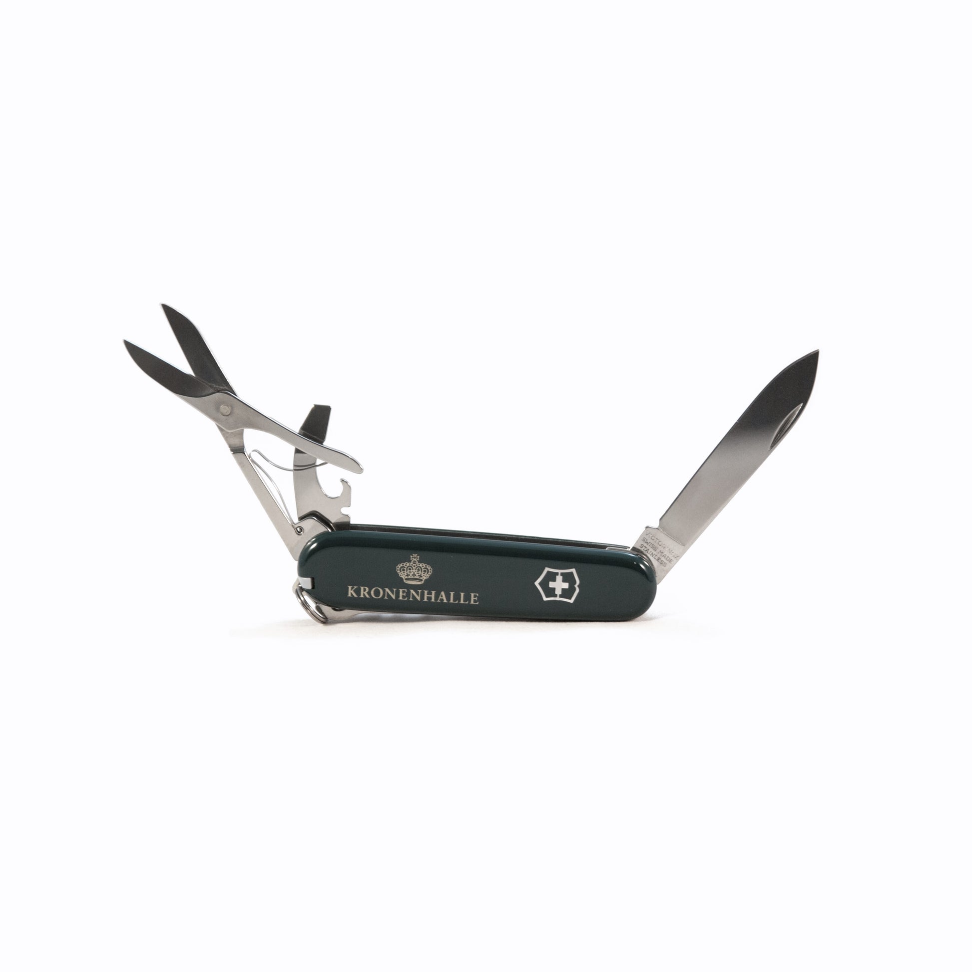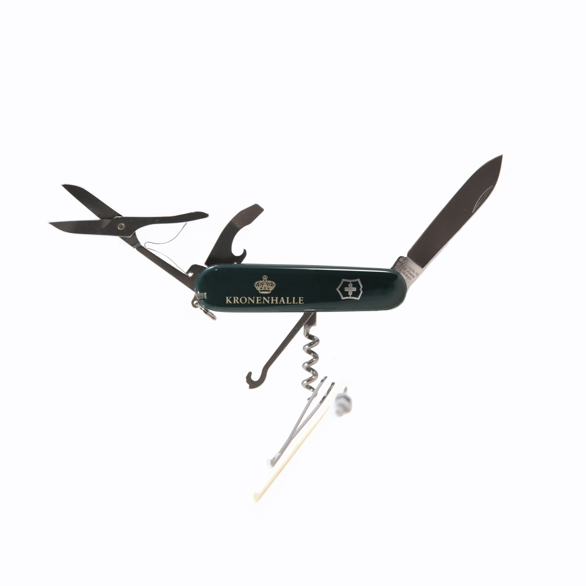 Messer, Schere, Flaschenöffner, Korkenzieher, Zahnstocher, Kugelschreiber, Pinzette